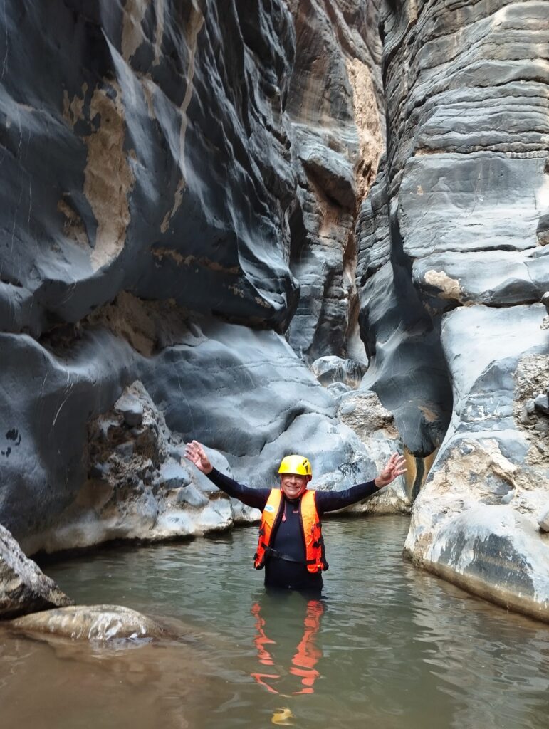 Dann wurde die Schlucht allmählich breiter und die Sonne wärmte uns etwas. Das kalte Wasser hatten wir geschafft, noch einige hundert Meter Felsen klettern und wir sahen in der Ferne erleichtert den Jeep, der schon auf uns wartete.